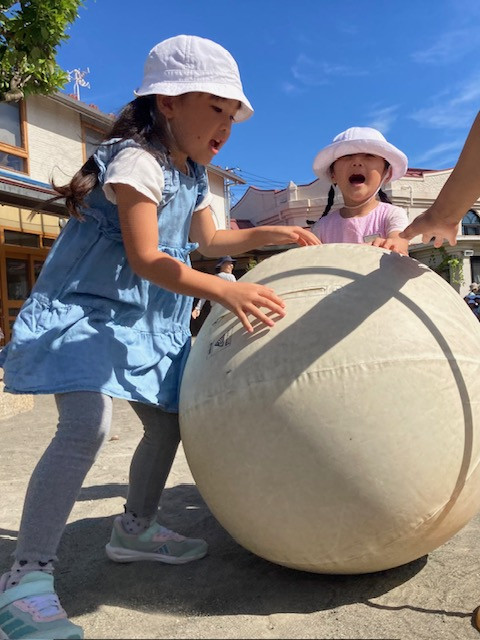 大型積み木、力を合わせて運ぼう!