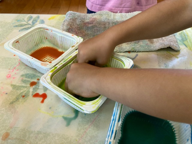 色水でジュースも作りましょう。「メロンジュースできました」