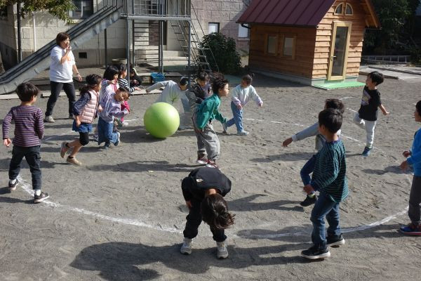ボールに当たらないように逃げてね。ボールをよく見て!