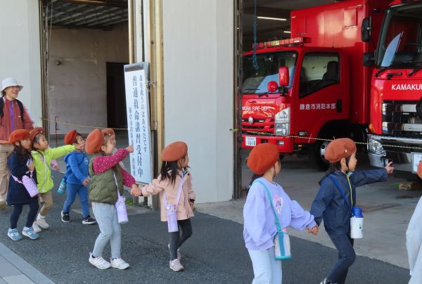 鎌倉警察の方に、横断歩道の渡り方や交通ルールを教えていただきました。