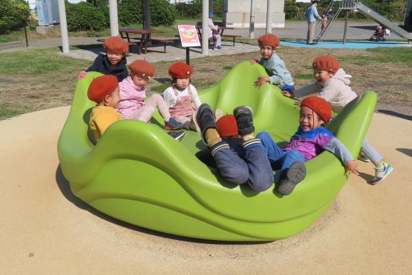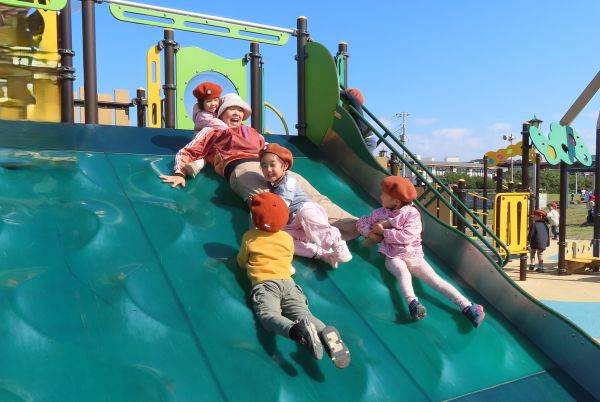 年中組と年少組で、海浜公園まで行ってきました。