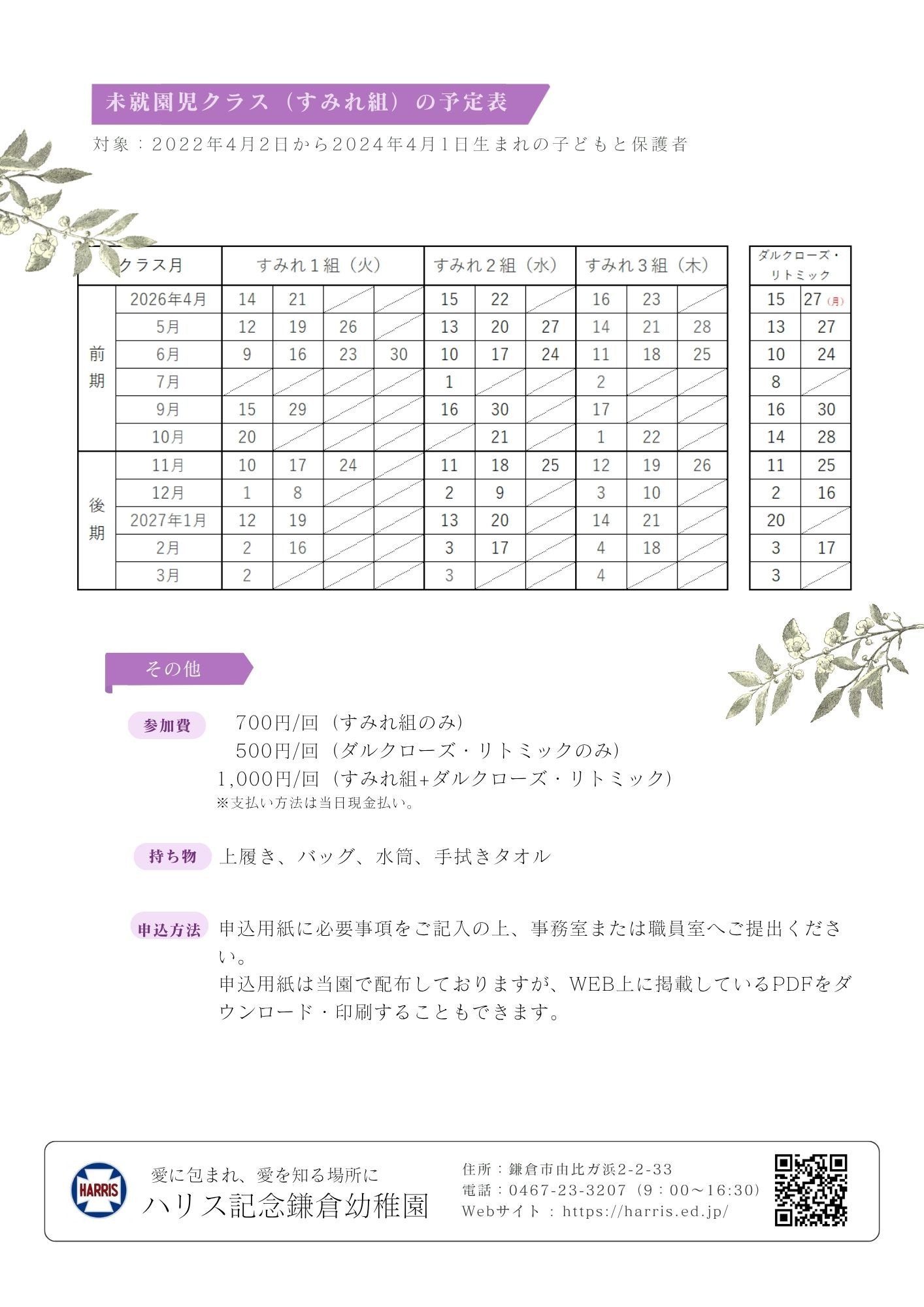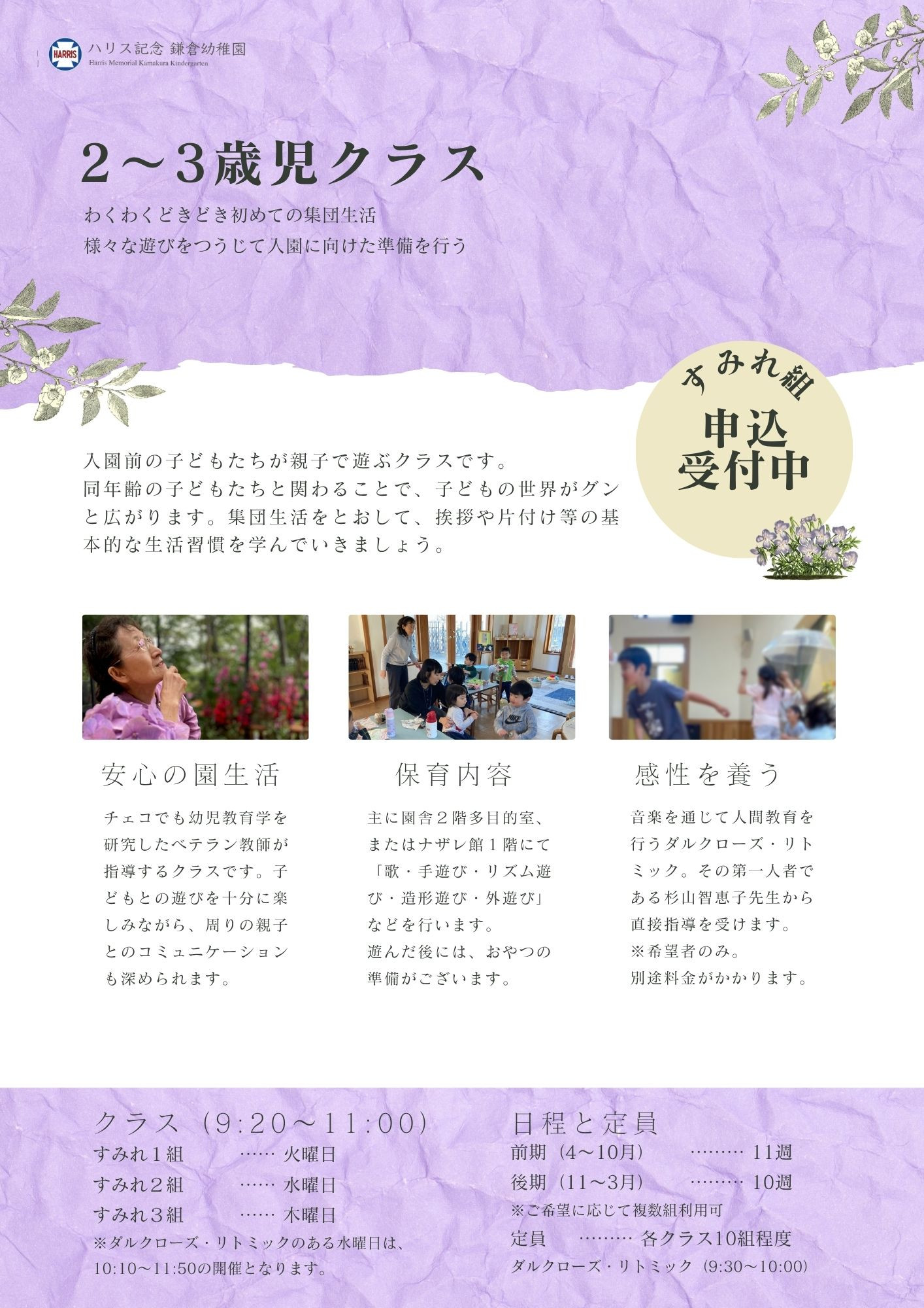 未就園児クラス(すみれ組)のご案内です。